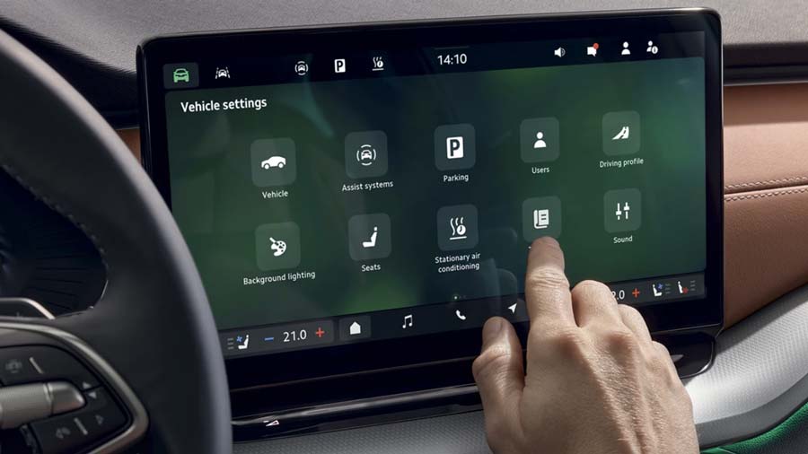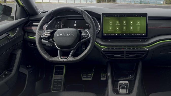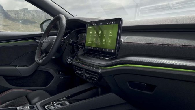 Màn hình giải trí & định vị 13 inch là trang bị tiêu chuẩn trên Škoda Octavia RS, hỗ trợ kết nối không dây SmartLink, điều hướng, radio trực tuyến, trợ lý giọng nói Laura và nhiều tính năng tiện ích khác. Ngoài ra, các trang bị tùy chọn như màn hình hiển thị thông tin trên kính lái (Head-Up Display) hay hệ thống âm thanh cao cấp Canton mang tới trải nghiệm giải trí và công nghệ cao cấp hơn.