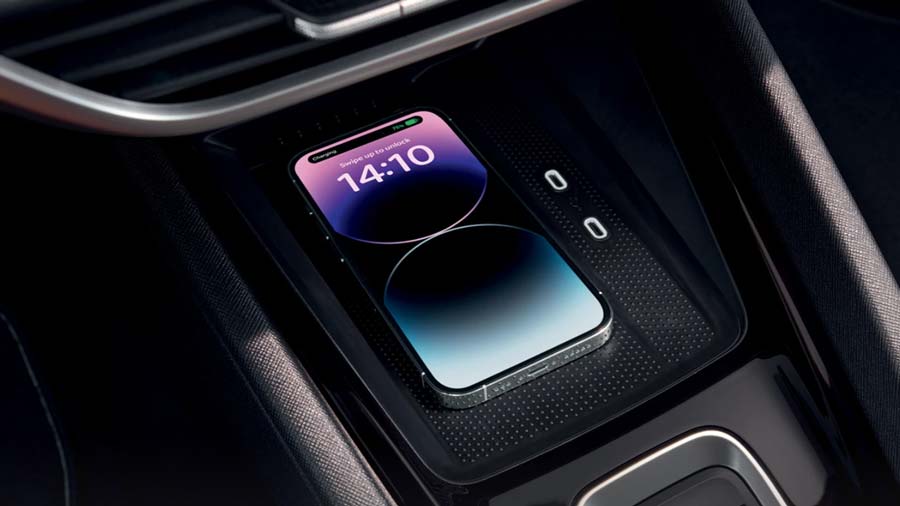 Skoda Octavia RS được trang bị bốn cổng USB-C sạc nhanh 45 W — hai ở phía trước và hai ở phía sau, đáp ứng nhu cầu sạc thiết bị cho cả người lái và hành khách. Ngoài ra, còn có một cổng USB-C 15 W trên gương chiếu hậu trong, thuận tiện cho việc lắp và sạc camera hành trình. Phone Box là khu vực để điện thoại tích hợp chức năng sạc không dây với công suất lên đến 15 W và có làm mát chủ động, giúp thiết bị sạc nhanh và ổn định hơn trong suốt hành trình.