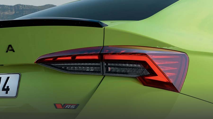 DNA thể thao của Octavia RS được thể hiện rõ nét nhất ở phần đuôi xe với cản sau thiết kế riêng cho phiên bản RS, logo màu đen bóng trên cửa cốp và cụm đèn hậu LED tiêu chuẩn tích hợp đèn xi-nhan hiệu ứng động cùng chức năng Coming/Leaving Home đầy cuốn hút. Đúng chất RS, dải phản quang đỏ kéo dài theo toàn bộ chiều ngang đuôi xe kết hợp ống xả thể thao với ốp đen tạo nên diện mạo mạnh mẽ và khác biệt. Kính cửa sau và kính hậu được nhuộm tối màu tăng thêm tính riêng tư và phong cách thể thao cho chiếc xe.